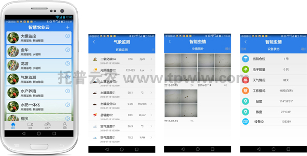 據(jù)湖南攸縣植保站的工作人員介紹,該套系統(tǒng)由蟲情信息自動采集分析系統(tǒng)、遠程小氣候信息采集系統(tǒng)、視頻監(jiān)控設(shè)備組成,可實時自動完成蟲情信息、苗情信息、田間氣候信息的數(shù)據(jù)采集,并自動上傳至托普智慧農(nóng)業(yè)云平臺。托普遠程可拍照式蟲情測報燈可實現(xiàn)在無人監(jiān)管的情況下,自動完成誘蟲、殺蟲、蟲體分散、拍照、運輸、收集、排水等系統(tǒng)作業(yè),并實時將蟲害情況上傳到托普智慧農(nóng)業(yè)云平臺,在網(wǎng)頁端顯示識別的蟲子,根據(jù)識別的結(jié)果,對蟲害的發(fā)生與發(fā)展進行分析和預測。