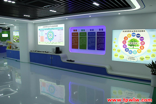 以往客戶了解自己感興趣的產(chǎn)品或者方案只能通過宣傳彩頁或者網(wǎng)站等渠道,為了給用戶更直觀的體驗,加快用戶對產(chǎn)品的了解。2015年12月,托普云農(nóng)在公司總部著手打造立體化、專業(yè)化的現(xiàn)代農(nóng)業(yè)展廳。2016年3月展廳落成,并對前來考察的用戶開放。