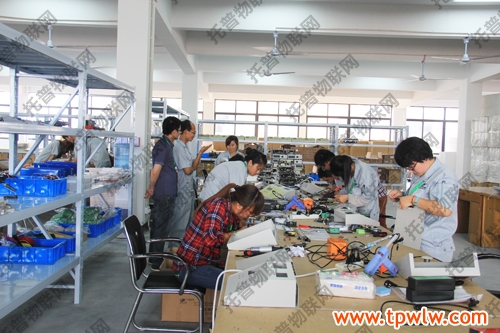 圖為:土壤養(yǎng)分速測(cè)儀生產(chǎn)小組比賽現(xiàn)場(chǎng)