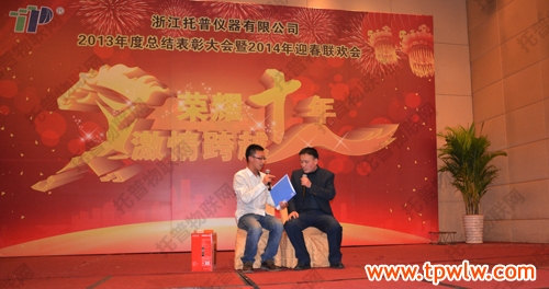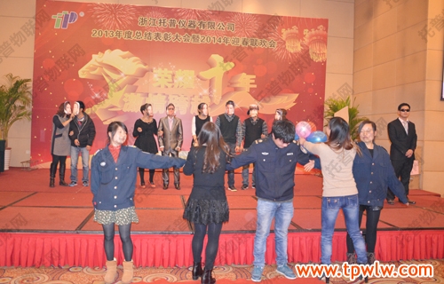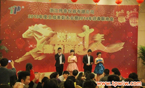 - “榮耀十年、激情跨越”之托普儀器2013年年終晚會發(fā)表日期:2014-01-27 來源:托普云農(nóng) 瀏覽次數(shù):3883次飛雪送蛇歸,駿馬迎春來。2014年1月24日六點(diǎn)整,在一片歡樂祥和的氣氛里,“榮耀十年、激情跨越”之托普儀器2013年年終晚會緩緩拉開序幕。托普儀器260余人的大家庭齊聚一堂,慶祝托普十年華誕,慶祝一年的工作成果,慶祝除舊迎新。晚會伊始,托普儀器陳渝陽總經(jīng)理上臺為本次晚會致開幕詞,為即將到來的馬年向所有托普家人致以新春的問候。