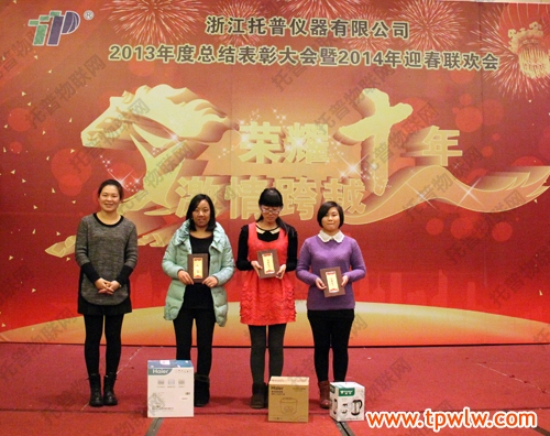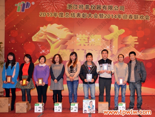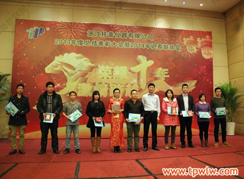 2013年1月24日,浙江托普儀器有限公司2013年度工作總結(jié)大會(huì)在海外海.納川大酒店隆重召開。經(jīng)過(guò)一上午的計(jì)劃總結(jié)大會(huì)后,下午迎來(lái)托普10周年之表彰大會(huì)。會(huì)議由銷售部張文超主持,表彰大會(huì)在奮進(jìn)的進(jìn)行曲中拉開了序幕。