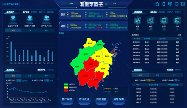 作為首個(gè)菜籃子保供數(shù)字化平臺(tái),“浙里菜籃子”構(gòu)建了“平時(shí)+戰(zhàn)時(shí)”“常態(tài)+應(yīng)急”“政府+市場(chǎng)”的保供機(jī)制。在“平時(shí)常態(tài)”下,圍繞生產(chǎn)和流通兩端主體,做好生產(chǎn)服務(wù)、政策支持、動(dòng)態(tài)監(jiān)測(cè)、質(zhì)量監(jiān)管和市場(chǎng)監(jiān)管,促進(jìn)產(chǎn)銷有機(jī)對(duì)接,形成生產(chǎn)保供、質(zhì)量監(jiān)管和市場(chǎng)保供三大能力。在“戰(zhàn)時(shí)應(yīng)急”下,按照監(jiān)測(cè)預(yù)警模型,在出現(xiàn)異動(dòng)時(shí),緊急啟動(dòng)應(yīng)急預(yù)案,一是快速掌握應(yīng)急需求;二是根據(jù)需求,迅速組織本地保供基地開展應(yīng)急生產(chǎn)、組織外埠保供基地開展應(yīng)急調(diào)運(yùn);三是把儲(chǔ)備產(chǎn)品、物資,生產(chǎn)出來(lái)的產(chǎn)品、外埠調(diào)運(yùn)的產(chǎn)品進(jìn)行應(yīng)急配送,確保短期內(nèi)送到居民手中;同時(shí),及時(shí)發(fā)布推送保供權(quán)威信息,合理引導(dǎo)輿論導(dǎo)向和大眾預(yù)期,讓老百姓心里有數(shù),心中不慌。