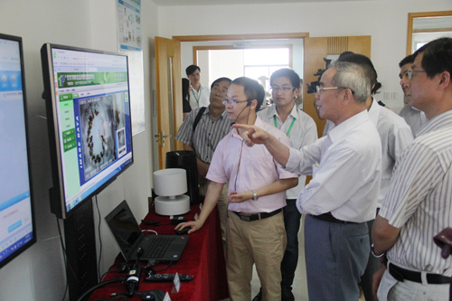 隨后,調(diào)研組成員在產(chǎn)品展廳觀看了托普儀器的信息化系統(tǒng),通過(guò)系統(tǒng)平臺(tái),眾人清楚地了解了室外監(jiān)測(cè)點(diǎn)傳回的監(jiān)測(cè)數(shù)據(jù)及視頻采集信息。方便快捷的操作步驟,及時(shí)準(zhǔn)確的數(shù)據(jù)分析,使眾人清楚的認(rèn)識(shí)到信息化技術(shù)給基層農(nóng)技推廣體系建設(shè)帶來(lái)的重大突破。