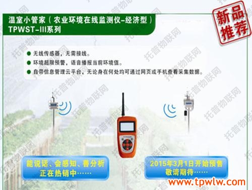 - 新產(chǎn)品上市通知——經(jīng)濟(jì)型農(nóng)業(yè)環(huán)境在線監(jiān)測(cè)儀發(fā)表日期:2015-03-27 來(lái)源:托普云農(nóng) 瀏覽次數(shù):4562次
