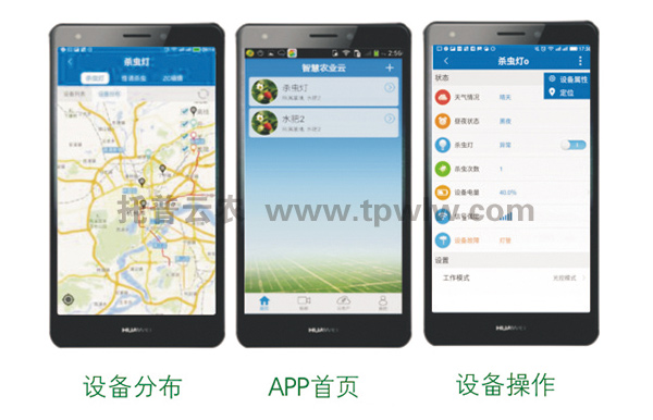 2、可通過Web端與APP遠(yuǎn)程控制。足不出戶就可以殺蟲燈了解地理位置、設(shè)備編號(hào)、基地名稱、故障報(bào)警信息。