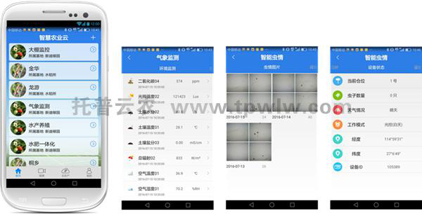 托普病蟲害監(jiān)測預(yù)警系統(tǒng)由蟲情信息自動采集分析系統(tǒng)、孢子信息自動捕捉培養(yǎng)系統(tǒng)、遠程小氣候信息采集系統(tǒng)、病蟲害遠程監(jiān)控設(shè)備、害蟲性誘智能測報系統(tǒng)等設(shè)備組成,可自動完成蟲情信息、病菌孢子、農(nóng)林氣象信息的圖像及數(shù)據(jù)采集,并自動上傳至云服務(wù)器,用戶通過網(wǎng)頁、手機即可聯(lián)合作物管理知識、作物圖庫、災(zāi)害指標等模塊,對作物實時遠程監(jiān)測與診斷,提供智能化、自動化管理決策,是農(nóng)業(yè)技術(shù)人員管理農(nóng)業(yè)生產(chǎn)的“千里眼”和“聽診器”。