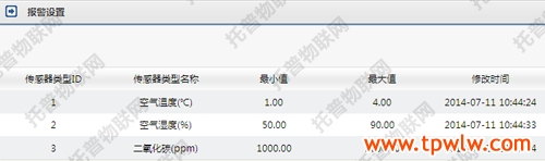 當(dāng)空氣溫/濕度、CO2濃度等環(huán)境監(jiān)測數(shù)據(jù)超過設(shè)定的預(yù)警值時,系統(tǒng)自動預(yù)警,生成預(yù)警事件,通過手機短信及網(wǎng)頁報警提示管理人員或工作人員進(jìn)行管理和控制。該模塊還可對系統(tǒng)產(chǎn)生的各個環(huán)境預(yù)警事件進(jìn)行詳細(xì)記錄,便于事后原因分析和對工作人員工作質(zhì)量進(jìn)行跟蹤監(jiān)督。